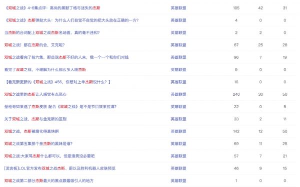 虎扑社区开贴讨论“杰斯行为”;游戏中只要出现杰斯英雄,就会被所有玩家攻击针对......《双城之战》在精品制作之余,找到了另外的话题突破口,即使没有破圈发酵,却让剧集能够持续在男性观众中有所热度。