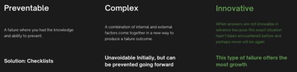 失败可以分为这三类:可预防的失败、复杂型失败、创新型失败