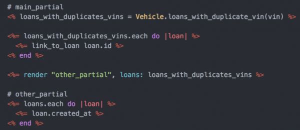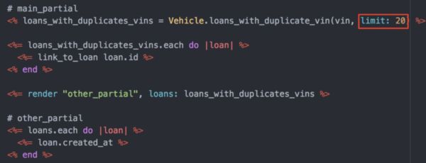 我刚开始做软件开发人员的时候,当时是在一家做车贷的金融科技初创企业工作。我写了一个查询,用来查找任何具有重复 VIN(车辆识别号)的车辆,然后在贷款批准流程把相关的车牌提取出来。代码看起来大概像下面这样: