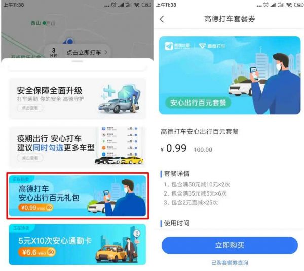高德打车则推出各类打车优惠券和套餐,对用户发放大额福利,并对于平台司机,推出了“工作日早高峰免抽佣”活动来获取资源。