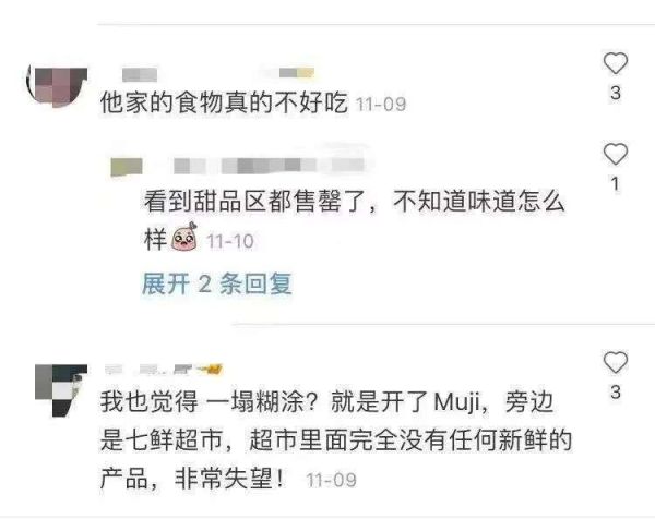 这一感受并非个例,许多等待MUJI“菜场”许久的网友均在微博、小红书等社交平台忍不住发文“跟期待的不一样”“有点失望”。