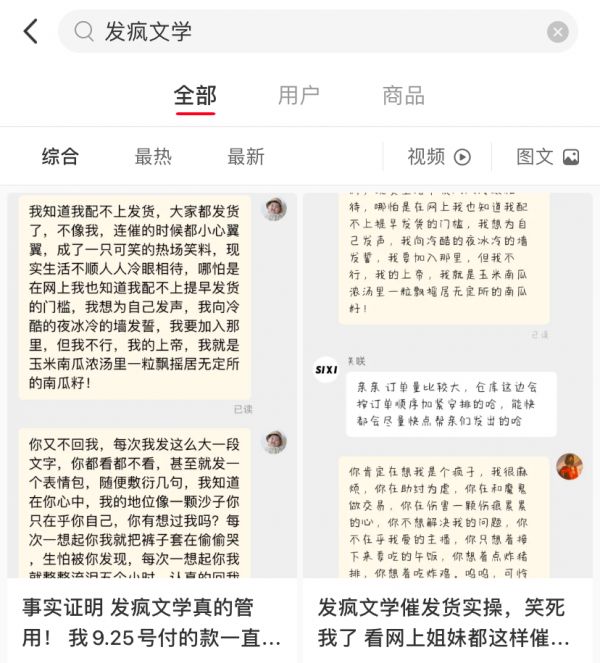 小红书搜索“发疯文学”。图片来源:小红书