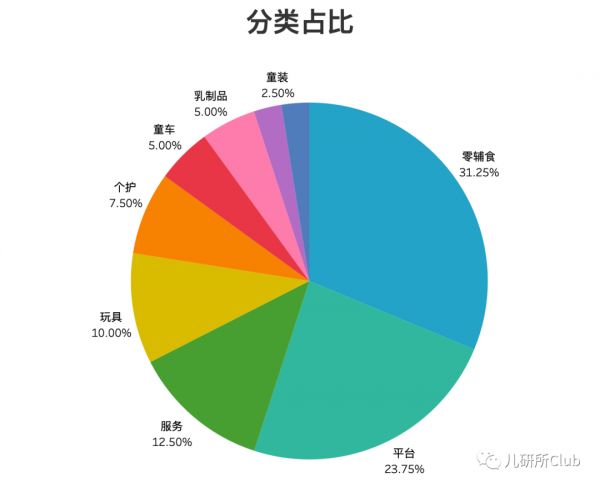 1)最吸金的细分赛道:零辅食、平台、玩具、个护、童车