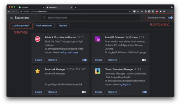 以 Chrome 为例:打开 Chorme 的扩展设置页面,开启开发者模式,然后点击加载扩展包,选择刚刚下载好并解压生成的文件夹。随后打开一个新标签页就能看到自己制作的新标签页扩展效果了!