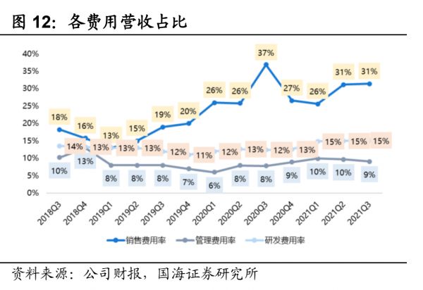 从2019年开始,销售费用超过管理与研发费用之和,图:国海证券