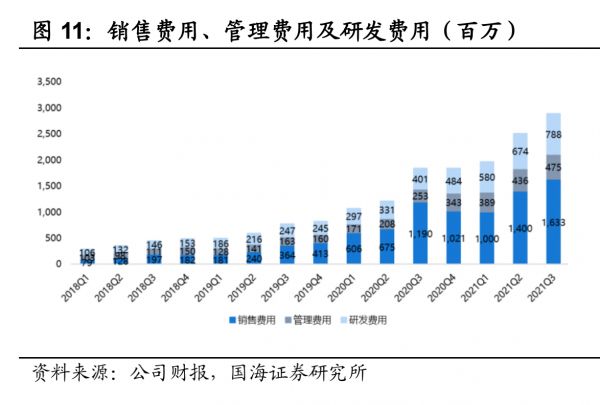 破圈开始后,B站销售费用增速远超管理费用和研发费用,图:国海证券