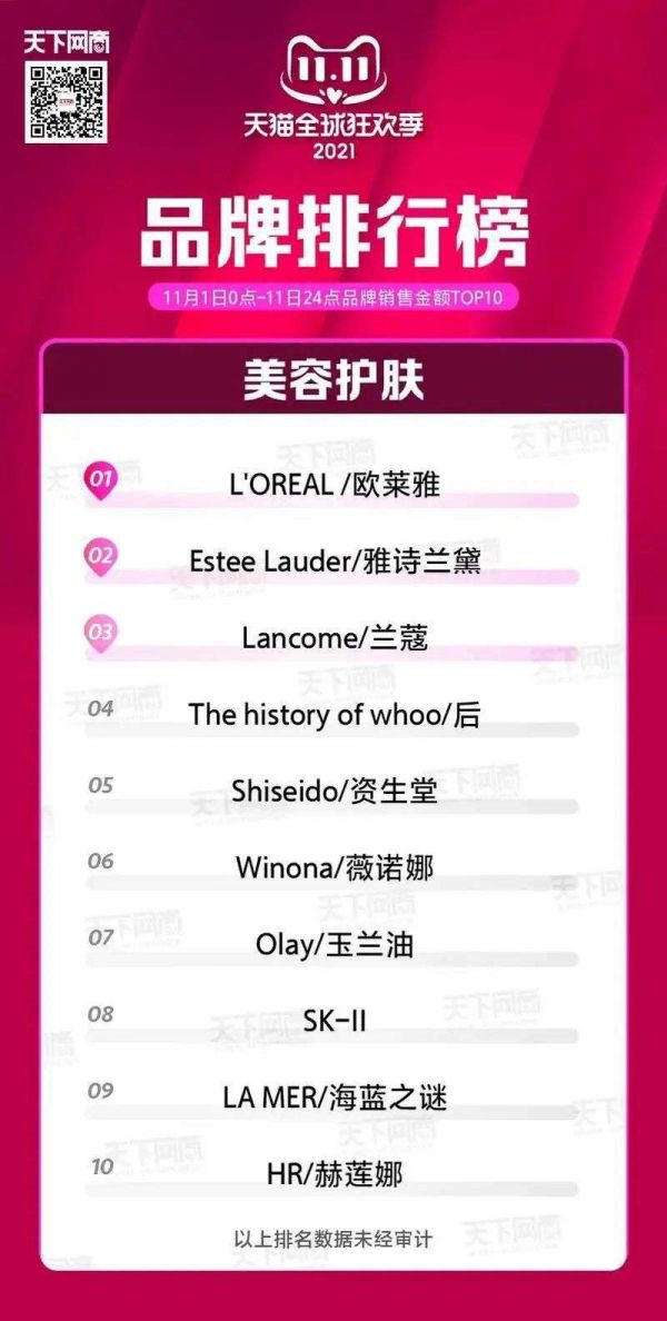 欧莱雅双十一销量排名美容护肤品类第一 图源/天猫官方