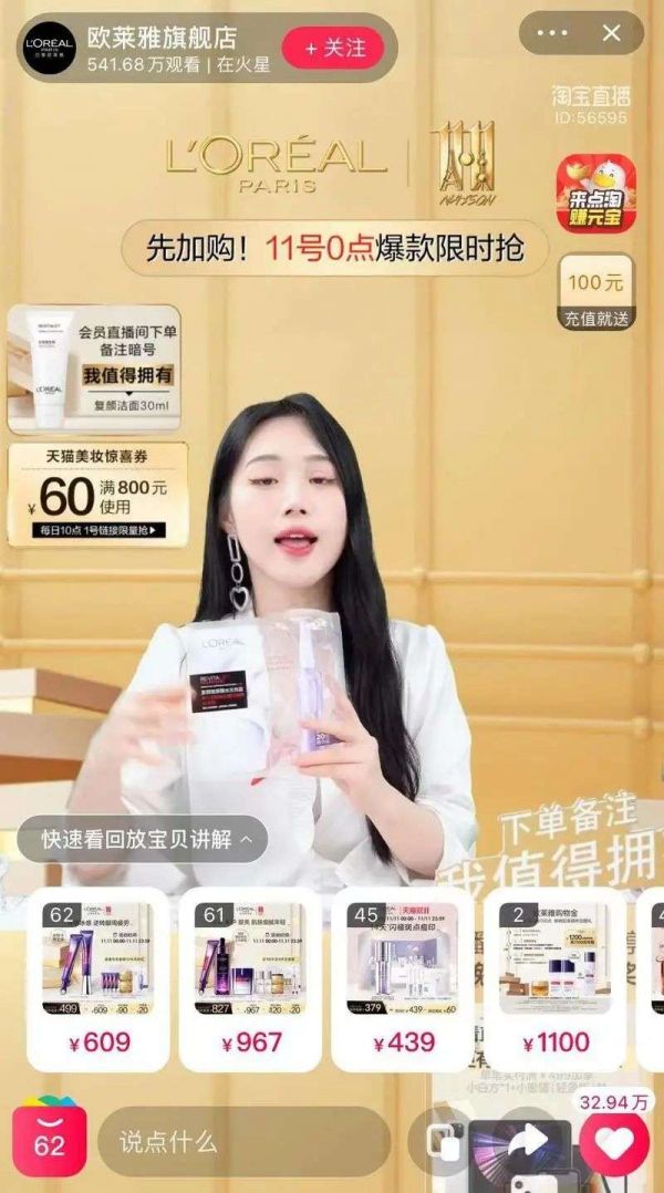 与此同时,欧莱雅集团也在发力自播。双十一期间,巴黎欧莱雅品牌的官方直播间能达到百万级PV。