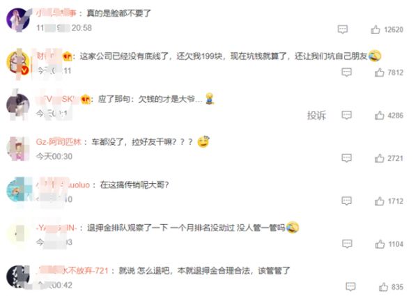 对此,网友纷纷开启吐槽。甚至有网友直言有网友表示:“这家公司已经没有底线了,还欠我199块,现在坑钱就算了,还让我们坑自己朋友”。还有网友表示,为了押金就得拉好友入坑?