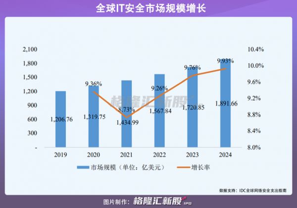 数据显示,2019 年全球网络安全市场规模达 1206.76 亿美元,并预期到2024年将进一步增长至1891.66 亿美元。