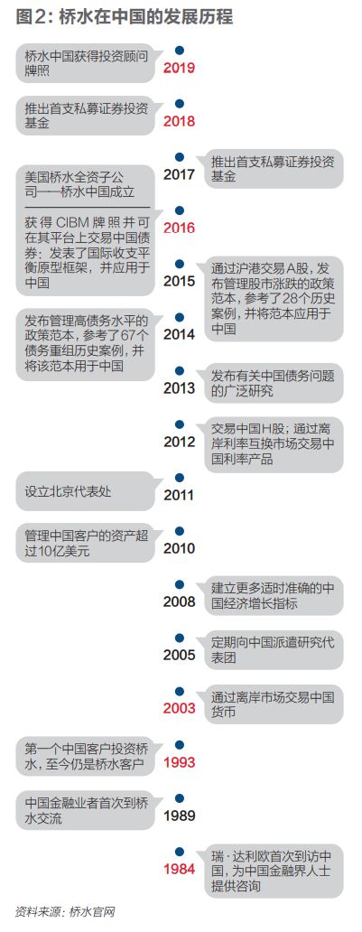桥水 1993年开始帮中国机构客户管钱,2011年正式设立了北京代表处,2016年全资子公司在上海设立。如今,桥水在中国已经备案了两只私募产品,而在海外也有超过百亿元的产品投向中国市场。