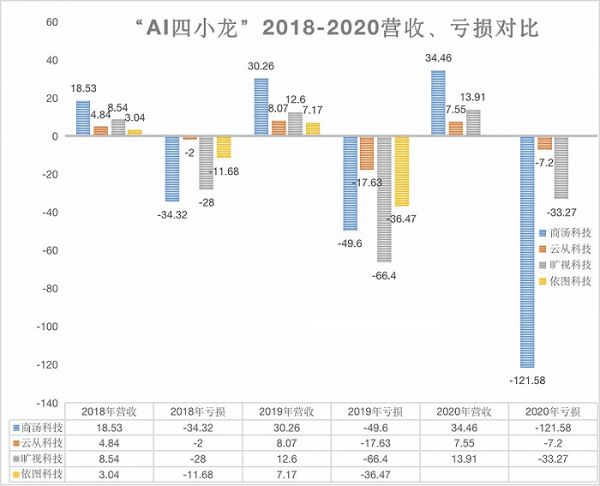 界面新闻此前报道过,从“AI四小龙”已经公开的最新资料看,商汤营收远远超过其他三家,但是仍然无法避免巨额亏损。