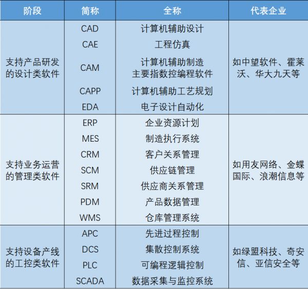 所谓工业软件,本质上是需要把凝结工业过程的数字、物理公式以计算机可解的方式集成起来,运用于整个产品周期管理流程中。根据机器之心援引e-works,一般分为三大类,即支持产品研发的设计类软件、支持业务运营的管理类软件以及对设备产线进行管控、数据采集和安全运行的工控软件。