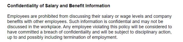 然而事实上,很多公司和员工签署的合同当中都存在保密条款,限制他们就薪资、工时等工作环境相关的信息进行讨论,类似下面这样的: