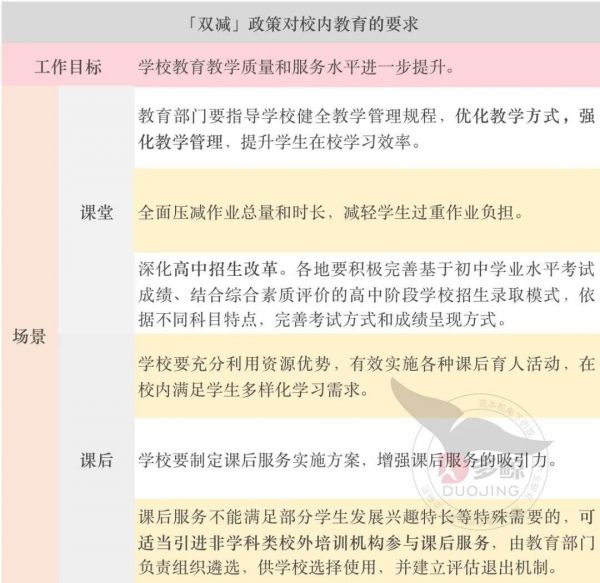 为减轻学生作业负担和校外培训负担,一方面,「双减」政策明确提出,全面规范校外培训行为,校外培训机构不得占用国家法定节假日、休息日及寒暑假期组织学科类培训,K12 校外学科培训时间被大量压缩。另一方面,当校外培训受限,教育回归学校这一主要场域,「双减」政策对校内教育的教学效果、管理效率、服务水平提出了更高的要求。
