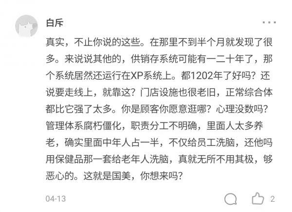 有国美员工表示,自己没进国美前有500个好友,进了国美之后就只剩300多个了,亲戚朋友都说一天能不能少发点广告,有时候感觉自己比微商还要恶心。