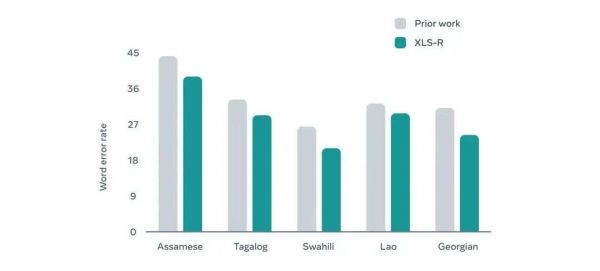 ▲XLS-R 识别单词错误率更低. 图源:Meta