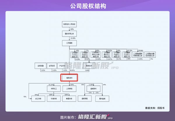 IPO前,江苏国泰为其控股股东,直接持股90.91%,并通过控股企业国泰投资间接持股 3.64%,合计控制瑞泰新材94.55%的股权。国际贸易公司通过控制江苏国泰,成为瑞泰新材的实际控制人。