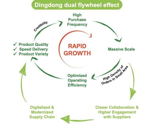 围绕效率,叮咚买菜提出了一个“双飞轮”的概念: