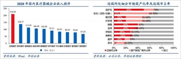作为国内最大的医疗器械公司,迈瑞医疗在行业内堪称一家独大。其中,监护仪、呼吸机、彩超、除输注泵、灯床塔、POC超声等都是国内第一;而监护仪、麻醉机、血球分析产品市场份额更是跻身全球前三。在生命信息与支持、体外诊断、医学影像三大重要领域,迈瑞在国内几乎没有对手。