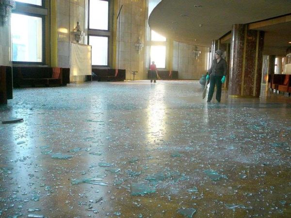 当地建筑物遭到陨石爆炸产生的冲击波影响