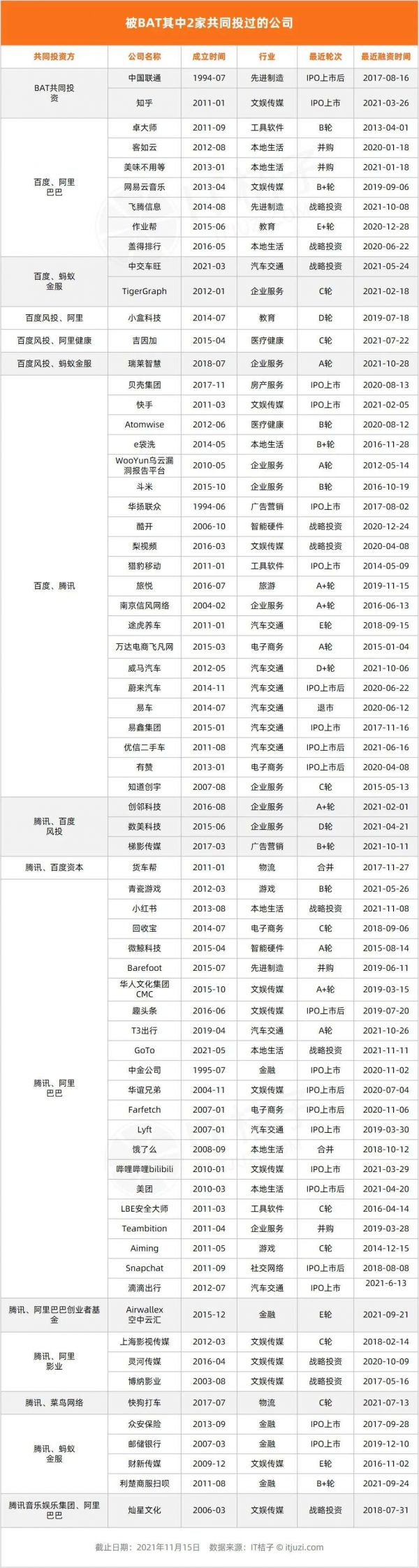 这些获得了阿里、腾讯共同投资的公司,给创投圈展示出了另一种可能——我接受你们的投资,无关乎意识形态,无关乎站队,只是投资而已。