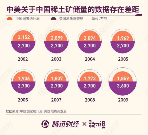 但中国稀土矿储量真有传说中那么多吗?中国可不这么认为,依据中国国家统计局公布的稀土矿储量数据,中国的稀土矿储量在2000万吨左右,远不如美国数据中同期的数据。
