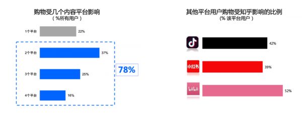 在广告之外,越来越多的消费者正在内容平台上寻找决策依据。11月22日,知名咨询公司凯度发布了《2021~2022内容营销平台价值价值洞察白皮书》(备注:下简称凯度白皮书),其中一项调研数据显示:有37%的消费者主要使用两个内容平台(备注:进行决策参考),41%以上的消费者经常会使用三个或以上的内容平台。