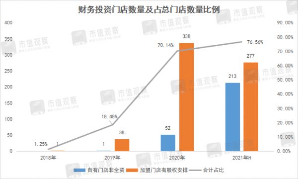 这主要包括两部分:一部分是公司自营门店中的“非全资门店”,另一部分是公司加盟店中的“有股权安排的加盟店”。招股书中称,“非全资自有门店”为公司持有超过51%股权的自有门店,“有股权安排的加盟店”为公司持有少数股份的加盟店。