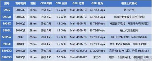 可以看到,从2015年第二季度到2018年第三季度,长达三年又一个季度的时间里,晶晨的S905系列电视主控几乎没有进行过任何架构、制程方面的升级,甚至还常常出现新推出的型号在功能上反而比上代产品“阉割”的情况。直到2019年第三季度,他们才姗姗来迟地推出了制程、架构、技术都更新的S905X3主控。而且即便是S905X3,放到如今的电视主控市场中,也压根就称不上高规格。