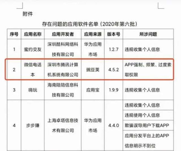 公开消息显示,工信部自2020年1月起共对62余万款应用完成了检测工作,截止至今年年初,已责令2234款违规应用进行整改,公开通报683款、下架169款。微信电话本就因为违规收集使用个人信息等被多次通告,最终于10月22日从各应用商店下架停止服务。