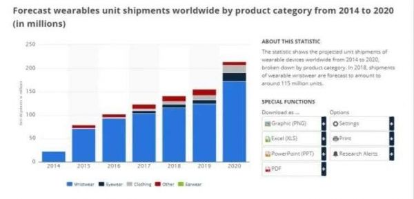 Statista 当年对可穿戴设备的市场预测