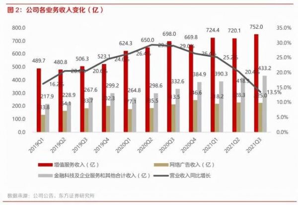 公司to B端的业务增长也较为强劲,东兴证券指出公司金融科技和企业服务收入增速高于整体,支付业务有望继续扩张,云及其他企业服务业务上,SaaS和PaaS等业务均进展顺利。在风险提示中,多家机构仍提示相关政策调整带来的业绩影响,以及游戏收入不达预期、投资标的收益波动等风险。