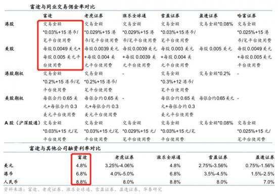 相对于其它互联网券商,富途的佣金费率和融资利率都处于高位,而且在香港零售市场的交易市占率不断提升,缩小了与传统跨国券商巨头的差距。