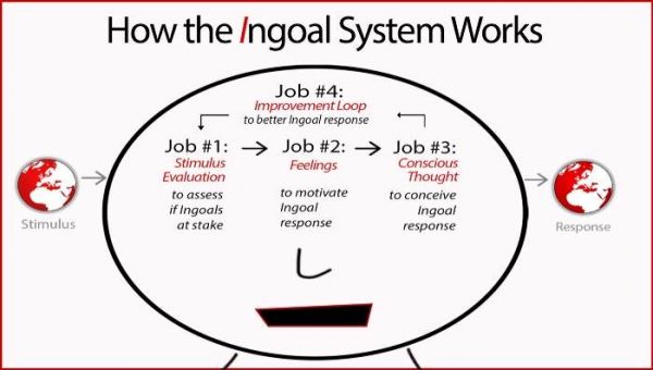 这让我们不禁要:大脑是如何实现它的目的的?进化塑造了人类的思维,所有人类的思维渴望满足大约40个内在目标(Ingoals)。世界上你所想所做的一切,都是为了满足这些目标。你的心理系统,和我的一样,都是一台为了满足内在目标的机器。不同的人的系统的不同之处在于它们如何实现目标。你可能通过环游世界去完成你的冒险目标,而我完成冒险目标的方式可能是骑山地自行车。我们所做的都是不同的,但我们这样做的原因是与生俱来的,是一样的。