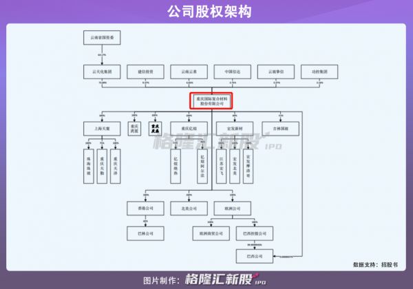 国际复材前身是国际复材有限,成立于1991年,由重庆市玻纤厂与 PC 国际、玻璃原丝公司、鲍里斯共同出资设立。IPO前,云天化集团为公司控股股东,控制其73.69%的股份。云南省国资委通过直接持股云天化集团,成为国际复材的实际控制人。
