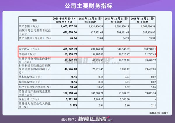 2018年至2021年上半年,国际复材实现营收分别52.07亿元、54.85亿元、69.12亿元、40.17亿元,三年半累计营收超210亿元;同期录得净利润分别为2.13亿元、1.67亿元、5.84亿元、5.33亿元,三年半累计盈利约15亿元。