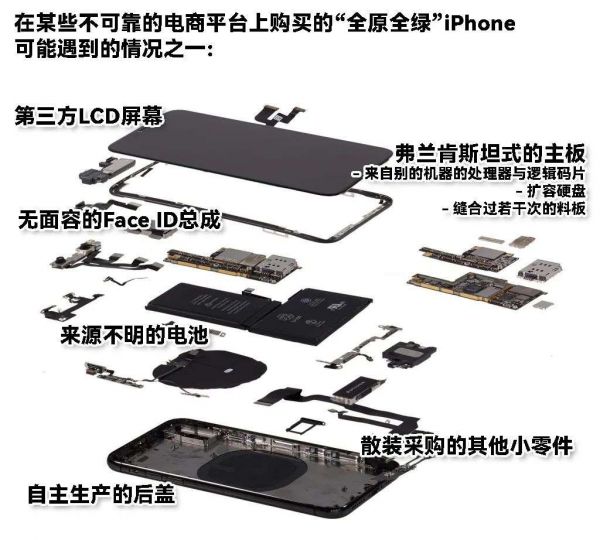 而屏幕和主板这两个价值较高的零件,更是有了各自的细分市场:前者包括屏幕素质和制造工艺都差强人意的仿屏,给原厂显示面板重新贴合玻璃的后压屏,以及存世稀少的真正原装拆机屏;后者则出现了将部件拆焊后重新安装到另一块主板上面的所谓「搬板」主板……
