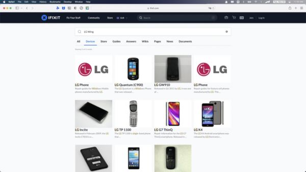 iFixit 作为或许是全球最知名的消费电子产品维修企业,对于维修指南的特别关注可能很难让人理解,然而事实却是, Apple 从未放出过任何来自官方的对于 iPhone 的拆卸和组装指导。也就是说 iFixit 网站上面那些拆解的视频和指导严格意义上讲全部都是亲手摸索出的经验性步骤,而非有依据有指导的拆解指南。除此之外, iPhone 由于其特殊性和独特的地位会有类似 iFixit 这样的第三方尝试主动拆解并总结经验,但是 iFixit 并不是万能的,尽管可以通过社区收集更多种不同设备的信息, iFixit 仍然无法涵盖所有的品牌和型号——比如我个人非常感兴趣的 LG Wing ( LMF100N )就无法在他们的网站上找到对应的指南信息: