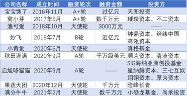 从营养麦片切入早餐场景解决方案的“小黄象”今年完成了数千万元天使轮融资;“果蔬天团”成立不到一年的时间内获得两轮投资,并已开启新一轮融资;启旭哆猫猫一年融资四次;“妙飞”B轮融资过亿元,钟鼎、经纬和高瓴参与。参与赛道的投资机构不乏真格基金、险峰长青、经纬中国等明星资本。