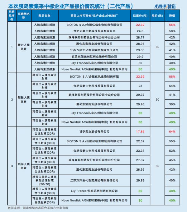 (需要注意的是,今天上午,网上流出的一份胰岛素集采拟中选报价单,与国家组织药品联合采购办公室公布的最终结果有出入)
