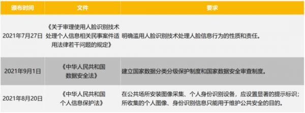 今年下半年起,多条针对个人隐私的政策法规相继发布,明确了滥用人脸识别技术出力人脸信息行为的性质和责任,并表示在公共场所安装图像采集、个人身份识别设备,应设置显著的提示标识。