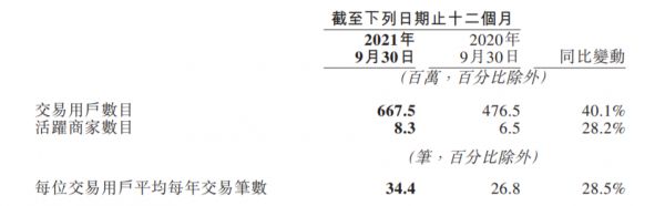 截至9月30日,美团年交易用户数为6.7亿,该数据及活跃商家数均创历史新高;交易用户年均交易笔数达34.4笔,同比增长29%。