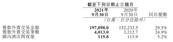 美团表示,公司酒店预订业务深受德尔塔变种病毒及出行限制的影响。但本季度境内酒店间夜量与2019年及2020年同期相比仍实现了正增长:公司本季平台上消费的国内酒店间夜量为1.2亿,同比增长5.2%。