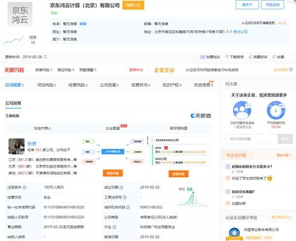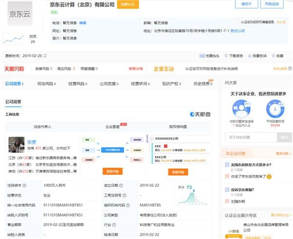 这两家公司均注册于2019年2月22日,法定代表人为张雱,刘强东任经理。经营范围包括数据处理、计算机系统服务、应用软件服务等。