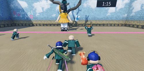 譬如上个月网飞出了一部《鱿鱼游戏》,一时间风靡全球,很快就有人把这部剧集中出现的冒险关卡搬到了《罗布乐思》社区里。那些看完剧集也想在游戏里赌一把运气,检验自己是否也有成主角体质的的观众,就能到游戏里模拟一把。