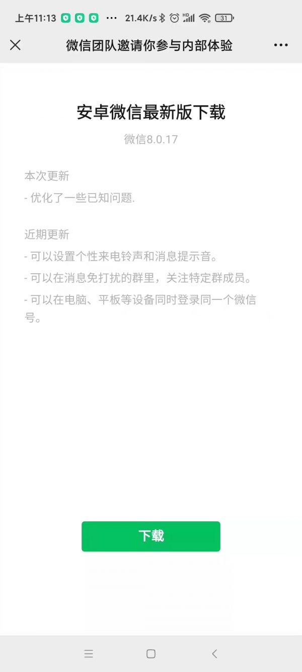 目前微信线上最新版本为8.0.16版本,而8.0.17为内测版,内测版是可以下载更新的。