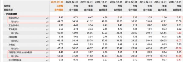 股价飙升的背后,有扎实的业绩作为支撑,2013-2020年,营收和归母净利润年复合增速分别为38.08%、50.29%。今年前三季度,营收大增64.22%,归母净利润大增59.63%。