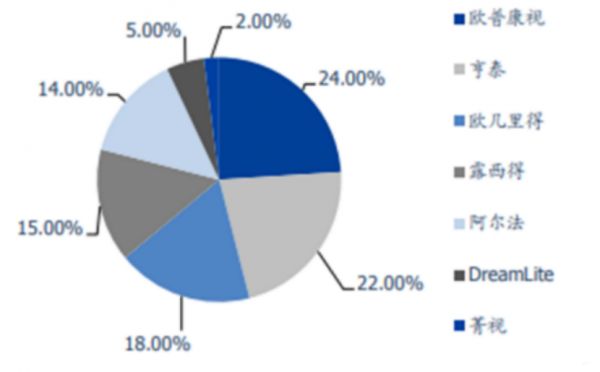 (2018年角膜塑形镜市场格局,来源:国盛)