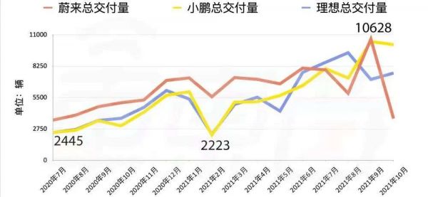 蔚来10月份交付量垫底,“蔚小理”差距迅速缩小
